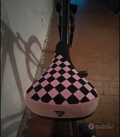 La bici monta un mono corona (prima ne aveva due) un freno shimano idraulico a 2 pastiglie e una sella in tessuto mafia bike