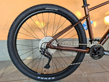 Caratteristiche: telaio in alluminio, forcella Giant SXC2 pneumatica 100mm, cambio Shimano Deore 2x11, freni a disco idraulici Shimano, ruote 29x2.4