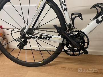 Vendo Giant TCR Advanced in carbonio, per inutilizzo (prezzo trattabile) 🔧 Montaggio: •Telaio: Giant TCR Advanced carbonio •Taglia: L •Gruppo: Shimano Dura-Ace 10v •Guarnitura: Rotor con corone ovali •Ruote: Mavic Ksyrium Pro Exalith •Freni: rim brake •Portaborraccia inclusi Extra: 👉 Inclusa ruota anteriore Mavic Ksyrium Pro Exalith di scorta