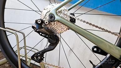 Monta il gruppo elettronico Shimano 105 Di2 a 12 velocità, che offre cambiata rapida e precisa.