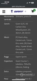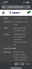 Vendo Giant TCR Advanced Disc 1+ utilizzata molto poco, acquistata in Aprile 2024. Taglia M/L.