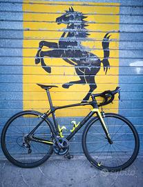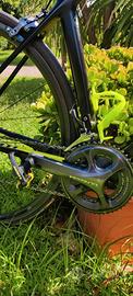 Tutto in carbonio con gruppo Ultegra 50/34 freni e cambio 11V.