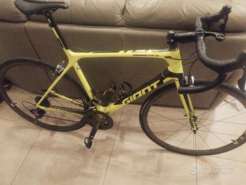 vendo Bici da strada TCR del 2017 in carbonio top di gamma, montata Shimano Ultegra, freni rim, ruote in carbonio giant srl 1, taglia M/L in buone condizioni e perfettamente funzionante. vendo con pedali look keo Classic. peso sotto i 7 kg. vendo con spacer per regolare altezza