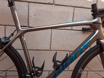 Allestimento Shimano Ultegra 2x11V, con guarnitura 36/52 with Giant Power Pro power meter, pacco pignoni Ultegra 11-34. Completamente revisionata pochi mesi fa con cambio movimento centrale, catena e pacco pignoni.