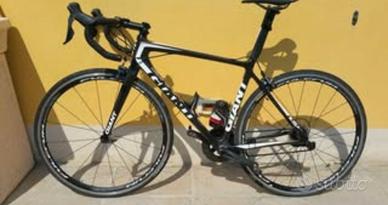GIANT TCR ADVANCED SL ISP - taglia M, usato pochissimo in ottime condizioni. Questo modello era il top di gamma GIANT, destinato alle competizioni è senza compromessi è rigido, reattivo, scattante ma al tempo stesso stabile e facile in guidabilità. La misura M ha uno sviluppo di lunghezza longitudinale di 55,5 cm, una altezza di tubo sterzo di 15 cm ed il costruttore lo dava indicato per altezze ciclista da 1,75 a 1,80 (io per esempio sono 1,81 e pedalo a 76,5 mm e mi va bene).
