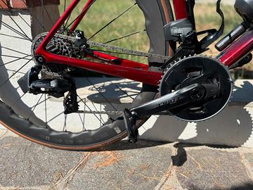 Come da titolo vendo bicicletta Giant advanced SL in taglia M/L montata come da descrizione: Telaio: Giant TCR advanced SL (top di gamma) Misura: ML (per altezze tra 178-185cm) Reggisella: integrato, tagliato a 76.5cm da mov centrale-Piano sella, fornisco spessori per alzare la sella con secondo attacco sella. Gruppo: Sram Force axs 12s completo Leve : sram force axs (nuove appena sostituite) Guarnitura: 172.5 con misuratore di Potenza quarq powermeter dual pover 48x35 Cassetta: Sram Force 10x28t (opzionale 10x33t) Ruote: ** NB non quelle in foto, ma vendo con Fulcrum Racing 600 in alluminio (nuove mai usate)** Attacco manubrio: 110cm in carbonio Giant sl Sella: Shimano PRO Sono stati appena eseguiti : Spurgo freni, sostituzione pasticche ant e post e sostituzione cuscinetti serie sterzo. No perditempo no offerte assurde. Ripeto non vendo le ruote in foto. Spedisco in tutta italia.