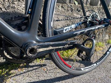 Bici usata e revisionata nella nostra officina. Materiale forcella: carbonio Deragliatore anteriore: campagnolo super record 11 Deragliatore posteriore: campagnolo super record 11 Pedivella: campagnolo super record Freni: campagnolo super record Ruote: ambrosio Pneumatici: schwalbe Lugano 2 Sella: fizik Attacco manubrio: deda Pacco pignoni: 11 velocità Corone: 53/39 Pedali: look