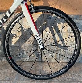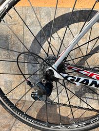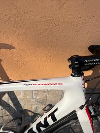 Vendo bici da corsa in carbonio Giant tcr Advanced SL taglia M per altezze da 170 cm a 178 cm. La bici è in ottime condizioni, non presenta alcun tipo di graffi o cadute. Il telaio è il modello con il reggi sella integrato tagliato ad un altezza sella di 72,4 cm, ma può essere facilmente aumentata con gli spessori in dotazione.