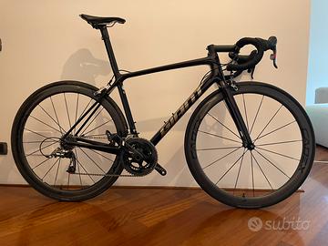 Come da titolo vendo Giant TCR SL in taglia M. Kit telaio comprato nel luglio 2024 (dispongo dello scontrino) montata con gruppo SRAM red 22 meccanico (11 velocità) e ruote CADEX 42mm. Tubo sella del telaio tagliato solo 1.5cm rispetto la misura originale. Vendo senza pedali e senza sella.