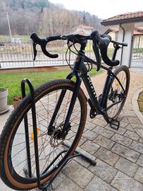 Taglia M (sono alto 170 Ca.). Trasmissione Sora 2x9. Gomme 700.x 45 inserto Tannus. Pronta all'uso. Gravel e cicloturismo. Alluminio + Forcella in carbonio. Numerosi fori x portapacchi. Colore blu notte. Non spedisco , non scambio, non rispondo ad offerte ridicole.