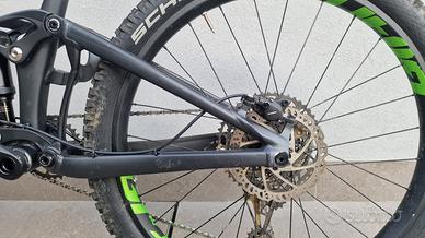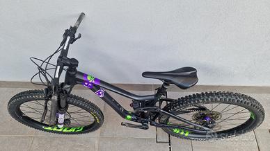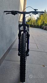 Vendo Giant Trance Jr 26, usata circa 2 anni, in ottime condizioni. Nelle foto mancano i pedali e le manopole che devo rimontare. Erano infatti state installate nuove manopole e nuovi pedali di colora viola in tinta con il wrap che è stato fatto al telaio, ora rimonta i pedali e le manopole originali. Nota molto importante, è stato aggiunto il sellino telescopico, modifica del valore di circa 350 euro. Molto utile per questa tipologia di bici. Esiste una sola taglia di questa bici, pensata apposta per ragazzi. Copertoni in buone condizioni. Ruote da 26" Telaio aluxx sl-grade Aluminum Forcella RockShox Recon Silver RL 15x110 mm Ammortizzatore RockShox Deluxe Select+ Cambio Sram SX Eagle 1x12 Freni Shimano BR-M201 idraulici, diametro anteriore e posteriore 160 mm