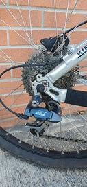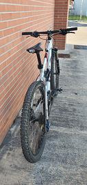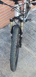 MTB alu taglia S, Ruote da 26". Ottime condizioni generali, usata prevalentemente su strada. Forcella Rockshox Sid con blocco al manubrio, freni a disco idraulici, cambio Shimano Deore 3 x 9, silenzioso e preciso. Manubrio Ritchey da 62 cm, attacco manubrio corto Specialized, Pedali spd, sella Prologò. Cavi e guaine nuovi, manopole nuove, gruppo frenante posteriore intero Shimano nuovo, catena nuova, pneumatici Hutchinson al 90%, fascia in kevlar antiforatura. La bici ha alcuni piccoli graffi legati all'utilizzo, ma si presenta comunque molto bene, meccanicamente in ordine e pronta per divertirsi, nessun lavoro da fare. Incluso nel prezzo regalo borsa portaruota MVTek (in foto), pastiglie freno originali Giant nuove e camere d'aria.