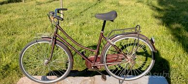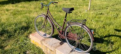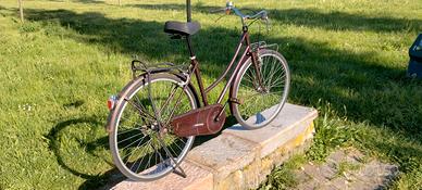 Bicicletta Girardengo modello Olandesina Donna - Telaio in acciaio con parafanghi in acciaio verniciato - Ruote 26 pollici in alluminio con copertoni in ottimo stato - Trasmissione mono marcia (catena nuova) - Sella morbida ammortizzata con molle elicoidali - Freni caliper, cavi e guaine nuovi. - Luce posteriore con faretto led nuovo - Portapacchi anteriore e posteriore - Cavalletto centrale e campanello - Bici funzionante pronta all'uso, segni di ruggine superficiale