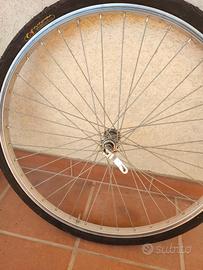 Ruota anteriore completa bici 26 pollici attacchi rapidi. tre copertoni 26 pollici da sterro. non spedisco