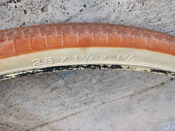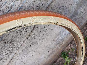 propongo 2 pneumatici clement Milano da 28 pollici ( 28 x 1,5/8 x 1,3/8 ) quello con la carta di giornale all' interno e' un fondo di magazzino e' perfetto esteticamente ma la gomma e' un po' dura, l' altro e' stato leggermente usato ed e' morbido. onde evitare problemi post vendita sono proposti come per uso statico collezionistico ( anche se uno e' sicuramente pedalabile ). simili a : superga , pirelli stella , michelin , Olmo ecc ideali per bici d' epoca R come : Bianchi , dei , legnano , taurus , maino , wolsit , olimpia, willer , stucchi eccc chiedo 40 euro per entrambi RIPETO proposti per uso statico collezionistico. gradisco il ritiro a mano così e' possibile constatarne le condizioni.la spedizione costa 20 euro visto pe dimensioni ( e per evitare di danneggiarli preferisco non piegarli).