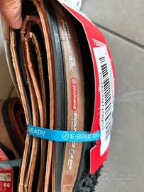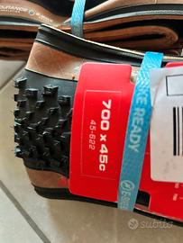 Gomme Gravel Vittoria Terreno 700x45 pieghevoli, ovviamente nuove; vendo per cambio progetto. Tassellatura da fango ottime per endurance, colore nero/marrone. Marchio Vittoria sempre una garanzia.