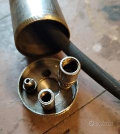 splendida pompa per bici d'epoca in ottone massiccio. unica nel suo genere mai vista prima. ha un gonfiaggio che è una meraviglia per come gonfia. con i vari ugelli a vite per le svariate tipologie di valvole d'epoca. contattare solo se seriamente interessati . spedizione tramite accordo