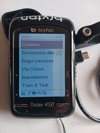 Vendesi ciclocomputer GPS Bryton cartografico, mappe precaricate, display con più pagine personalizzabili per visualizzare oltre 80 funzioni. Tecnologia Ant + e bluetooth che permettono di collegarsi con sensori di tutte le marche. Permette di creare o scaricare percorsi e seguirli svolta dopo svolta sulle mappe OMS EUROPA preinstallate. Completo di cavetto ricarica, supporto a sbalzo, laccetto anticaduta. Possibile spedizione.