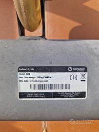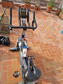 Bike da indoor cycling professionaleè progettata per chi cercaperformance, comfort e silenziositàin ogni pedalata. presenta segni di usura sugli adesivi. Telaio, volano e manubrio in perfette condizioni.