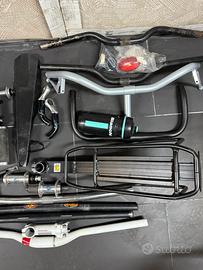 Vendesi in stock 7 manubri (quello bianco completo di stem) 2 portapacchi classici 1 portapacchi moderno Una coppia di mozzi novatec Parafancui btwin 2 coppie di prolunghe manubrio (una coppoa ritchey comp) 2 mozzi deore Manubrio legnano Guarnitura incomplrta legnano Copricatena legnano Sella cannondale Borraccia bianchi Svariati ciclo computer Svariate guarniture Svarati comandi cambio shimano (slx/tx/lx etc) Altri pezzi (cassette, corone, pedali spd, catene, deragliatori etc non in foto per motovi di spazio) Vendesi al miglior offerente/chi viene a prenderli prima con offerta minima Altrimenti chiedere pezzo per pezzo