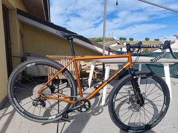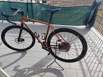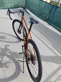 Gravel Genesis acciaio 725 con forcella in carbonio e forcella originale in acciaio.Cambio 11S mono corona 42 pacco pignoni 46-11.Ruote in alluminio Vision team 30.Taglia M.