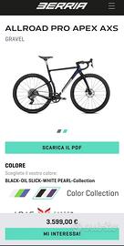 Causa cambio tipologia vendo bellissima Berria ALLROAD PRO APEX AXS tutta in carbonio, taglia L con cambio elettronico. Km percorsi 1500. Comprata in agosto 2025. Per altre info e foto contattatemi. Valuto scambio con ebike. Prezzo trattabile.