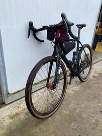 Vendo bici gravel marca Ican Cycling(produttore cinese) taglia 58,cerchi Stans modello Grail alluminio 32 raggi,mozzi Damil super scorrevoli,reggisella carbonio,manubrio Pro PLT in carbonio, di recente ho montato trasmissione Grx 1x12 con corona 36 denti e pignoni 11-51 per una rapportatura adatta a salite con bici carica,borsa telaio su misura Kicking Donkey..non sono comprese borse Miss Grape..vendo anche solo telaio se interessato