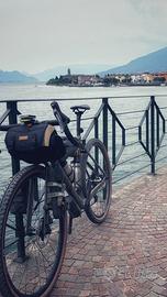 La bici è configurabile con diverse borse e accessori a vostra scelta: borsa top tube, frame bag, cage vari, front bar bag, saddle bag ecc… in foto ve ne mostro qualcuna (Apidura e Restrap). Venite a vederla, provarla e allestirla: il prezzo totale sarà conveniente per una bici pronta a viaggi anche di più giorni. Dispongo anche di abbigliamento vario anche di qualità.