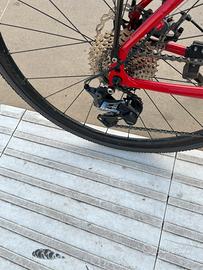 Bici gravel con telaio in acciaio leggero e forcella carbonio. Cambio shimano 2x9, freni disco, ruote tubeless nuove. Catena e pacco pignoni nuovi. Taglia M/L.