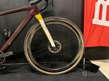 Come titolo vendiamo Gravel BMC URS 01 THREE Taglia S Montata come da catalogo + upgrade ruote Campagnolo BORA WTO 45 Telaio: URS 01 Premium Carbon with Micro Travel Technology | Tuned Compliance Concept Gravel | Gravel+ Geometry | ICS Technology | Stalth Cable Routing | Fender and Rack Mounts | Flat Mount Disc | 12 x 142mm Thru-Axle Forcella: URS 01 Premium Carbon with Tuned Compliance Concept Gravel | ICS Technology Integrated BRake & Hub Dynamo Routing | Fender Mounts | Flat Mount Disc | 12 x 100mm Thru-Axle Sospensione Posteriore: Micro Travel Technology Stays Cockpit Attacco Manubrio: ICS MTT x Redshift Suspension Stem | Integrated Cockpit System Technology Piega: Easton EA70 AX Reggisella: URS 01 Premium Carbon D-Shaped Seatpost Gruppo Campagnolo Ekar 1 x 13 Guarnitura: Campagnolo Ekar Corona: Campagnolo Ekarrings Pacco pignoni: Campagnolo Ekar Ingranaggi: 10-44T Catena: Campagnolo Ekar Cambio: Campagnolo Ekar Comandi: Campagnolo Ekar Ergopower Movimento centrale: PF86 Bottom Bracket Leve Freno / Pinze Campagnolo Ekar Dischi freno Campagnolo Ekar AFS Diametro dischi: 160 / 160mm Ruote Cerchi: Campagnolo BORA WTO 45 Pneumatici: WTB Raddler | 40mm Sezione max coperture 42mm