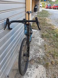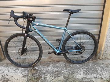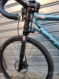 misura 56, forcella carbonio Lefty Oliver escursione 30mm bloccabile al manubrio, ruote 27,5, copertoni gravel nuovi, gruppo Apex con guarnitura ovale nuova 38T, pignoni 11v 11-42, nastro manubrio nuovo, in aggiunta coppia copertoni slik da strada da 40mm, perfetta pari al nuovo.