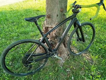 Telaio bottecchia fadalto taglia M carbonio, forcella carbonio. Reggi manubrio carbonio. Guarnitura monocorona SRAM xtr 34. Cambio 11 Speed Shimano XT. Freni derivazione MTB Magura. Pinze freno magura. Ruote 29".