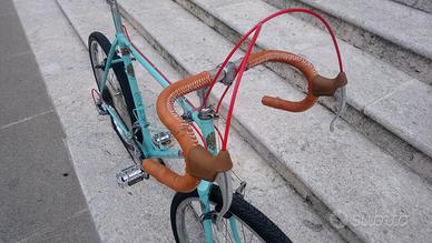 Vendo splendida e iconica trasformazione Gravel realizzata su base MTB 26". Un mezzo unico che fonde l'eleganza classica con la robustezza di una vera bici da viaggio. Verniciatura in un bellissimo Celeste Bianchi con decalcomanie personalizzate che la rendono un pezzo irripetibile.