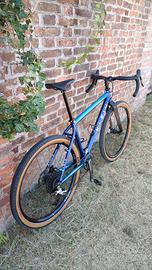 Vendo klein Attitude vintage trasformata in gravel con componenti di qualità. Telaio Klein attitude in alluminio, taglia M con forcella in carbonio Ruote Miche XM45 27,5 pollici, con copertoni Maxxis Rambler 650bx47 al 70% Leve Sram Apex Cambio Sram Rival 1x11v con corona 38T e pignoni 11-42 (regalo anche corona da 36) Guarnitura Shimano SLX 175mm Freni: anteriore TRP HYRD idraulico con tiraggio meccanico, posteriore Tektro (TRP Spyre) meccanico, entrambi con pastiglie nuove Manubrio Redshift Kitchen Sink misura 44 Attacco manubrio Thomson X2 Reggisella Thomson Elite Sella Specialized Peso bici: circa 10,5kg Non vendo pezzi separatamente. Prezzo non trattabile. Contattatemi pure per qualsiasi ulteriore informazione, foto, o per semplice curiosità.
