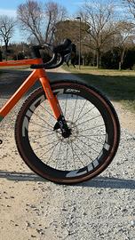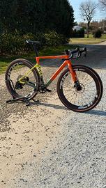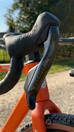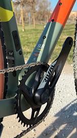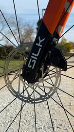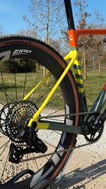 bici corsa gravel MEGAMO SILK 02 colore GRAVE taglia L 2026 adatta a persone di altezza tra 180cm e 192cm nuovo modello 2026 telaio full carbon SLR forcella carbon trasmissione cambio elettronica SRAM RIVAL XPLR AXS 1x13 velocità rapporti (ant): 40T rapporti (post): 10-46T, guarnitura con sensore di potenza QUARQ incluso. ruote carbon ZIPP 303 XPLR S 54mm manubrio integrato carbon gravel con misure: estensione 100mm; larghezza piega manubrio (al centro della curva anteriore) 380mm; larghezza piega manubrio (al centro della parte terminale del manubrio posteriore con flare 8°) 430mm; pneumatici: PIRELLI CINTURATO RC CLASSIC 45mm sella: FIZIK Vento ARGO X5 prezzo EUR 5399 bici venduta da concessionario MEGAMO ufficiale spedizione disponibile in tutta ITALIA bici disponibile in pronta consegna