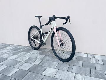 Bici gravel in carbonio completamente a cavi integrati a basso chilometraggio in taglia Size 1, adatta a rider tra 160 e 172 cm. Allestimento: Shimano Cues 1x11v idraulico-meccanico (42T con cassetta 11/50) Ruote in alluminio Copertoni Pirelli Cinturato Gravel M 45 mm Nastro manubrio Pro nero Sella Selle San Marco Shortfit Gravel Telaio di alta qualità predisposto per bikepacking, ideale per viaggi e avventure di lunga distanza e reattivo per competizioni. Inclusa garanzia completa per massima affidabilità e tranquillità. Pedali non inclusi.