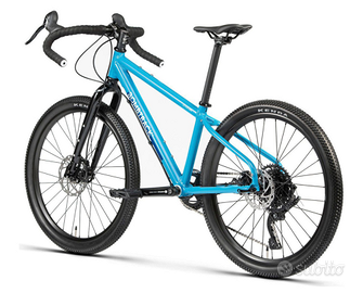 La Beyond Junior offre una versione ridotta della geometria da Gravel con uno standover ridotto, così che anche i ragazzi possano vivere la loro avventura o unirsi a un viaggio di gruppo. Il telaio in alluminio è leggero e robusto, così come la forcella in alluminio, con molti punti di attacco per trasportare tutto ciò che si desidera. Il cambio Microshift Advent a 9 velocità con rapporto 11-42T è abbinato al manubrio Bombtrack Beyond da 380 mm per un controllo eccezionale anche per mani piccole e spalle strette. Le ruote sono da 24'' con QR e montano pneumatici Kenda Small Block Eight 24 x 1,95 per un perfetto equilibrio tra velocità e aderenza.