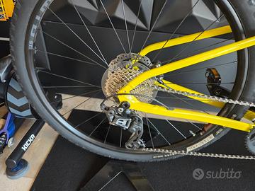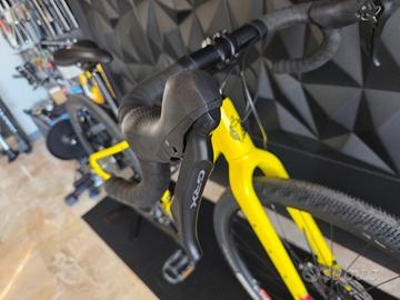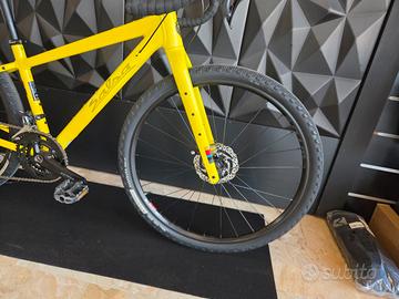 Nuovo con garanzia telaio alluminio forcella carbonio taglia 51, ma veste molto piccolo, corrispondente ad una XS gruppo shimano grx 2x11v freni a disco idraulici ruote wtb in alluminio il telaio ha una piccola botta sul tubo obliquo ed è per questo motivo che viene venduta a metà prezzo