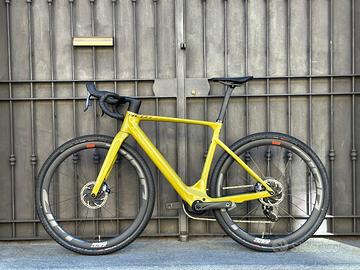 e-bike Gravel con motore TQ silenzioso e integrato per un feeling naturale e prestazioni al top. Con manubrio integrato in carbonio Syncros e gruppo SRAM Force AXS XPLR wireless: eleganza, potenza e tecnologia ai massimi livelli.