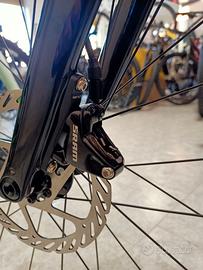Telaio in alluminio taglia 56 forcella con future shock 1.5 carbon gruppo Sram Apex 12 speed guarnitura 40 T cassetta 11/50 ruote Axis elite disc copertoni pithfinder 700x42c peso Kg 10,30