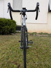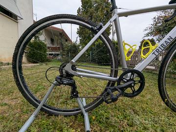 Bici gravel Triban RC 100 taglia M (165cm–173cm) grigia con cambio shimano Thurneiy 7 rapporti con comando manubrio. Sono stati aggiunti i due porta borraccia e finta borraccia con camera d'aria, bomboletta e leve per il cambio gomma ed infine il porta telefono. Bicicletta acquistata ad Agosto 23, sempre tenuta in garage e con 73 km percorsi, vendo per inutilizzo. SOLO RITIRO A MANO