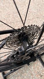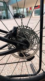 Gravel usata in perfette condizioni. Telaio e forcella in carbonio. Cambio Sram Rival AXS 12v, monocorona Sram 40T. Freni idraulici Sram Rival AXS. Reggisella telescopico Rockshox Reverb AXS. Manubrio in alluminio. Ruote 9thwave in carbonio AVALON 356. Pedali compresi Shimano XTR e luci .