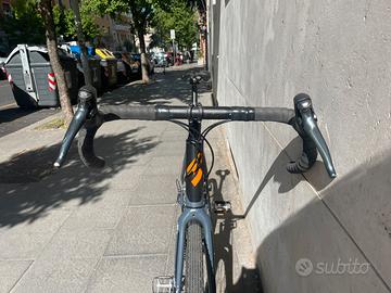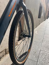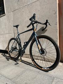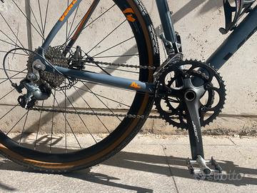 Vendo bici Gravel Vektor taglia L in ottime condizioni. la bicicletta ha telaio e forca in alluminio, freni a disco meccanici, cambio shimano tiagra con doppia corona davanti. La bici ha pochi chilometri all’attivo, mezzo ideale per chi desidera avvicinarsi al mondo gravel. I copertoni Continental 700x38 sono nuovi. L’unico difetto presente è uno striscio sulla forca lato dx visibile in foto. La bici è disponibile a partire dal 23 aprile, prima di quella data si trova a Roma. Di seguito le specifiche: Peso: 11,7 Kg Telaio: GRAVEL ALLOY HYDROF. 6061 Forcella: ALLOY Attacco manubrio: ALLOY Manubrio: ALLOY GRAVEL Reggisella: ALLOY Sella: ITALIA X-BASE Guarnitura: VKT 34/50 Gruppo cambio: SHIMANO TIAGRA Pacco pignoni: SHIMANO TIAGRA 12-28 Leve cambio: SHIMANO TIAGRA Sistema frenante: DISCO PROMAX MECC Leve freno: SHIMANO Ruote: VKT GRAVEL Resto a disposizione per ulteriori informazioni. Disponibile per spedizione a carico e organizzazione dell’acquirente.