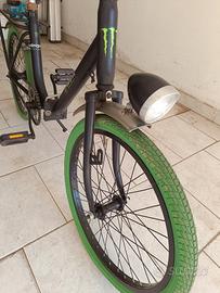Graziella, verniciata in carrozzeria con lo stesso metodo utilizzato per le auto, freno posteriore a tamburo, adesivi originali Monster, semplicemente bellissima.
