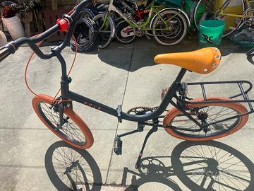 Graziella di colore nero con ruote e qualche spruzzta qua e la di arancione.