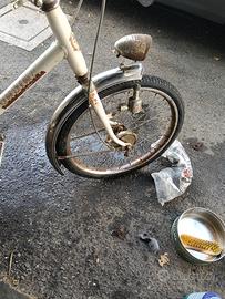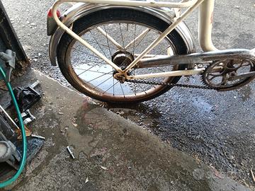 GRAZIELLA completamente originale, con freni a tamburo, pedali reclinabili, gomme e camera d'aria nuove. tracce di ruggine provocate dalla salsedine. incominciato un restauro conservativo che ha fatto tornare già i parafanghi e alcuni elementi come nuovi(paglietta da cucina e aceto)ora per poco tempo s disposizione vendo cosi com'è da terminare. Pronta all' uso e regalo a parte anche cestino per il porta pacchi dietro originale.