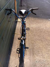 In vendita una splendida bicicletta pieghevole da adulto, dal design retrò ma arricchita da dettagli moderni e personalizzazioni originali. Il telaio, di colore nero opaco, è impreziosito da adesivi decorativi che le conferiscono un tocco giovanile e dinamico.