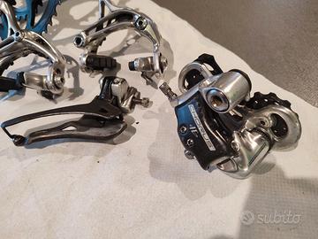 gruppo Campagnolo Chorus 11v completo di comandi, pedivella 50/32 posso fornire anche gli attacchi al telaio con filetto inglese , freni rim , deragliatore, regalo pacco pignoni miche usato.