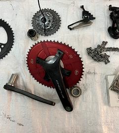 Gruppo completo Campagnolo chorus 12 velocità con freni a disco completi di pinze e cavi usato pochissimo con rocchetto 11/32, corone ovali su misura Ari 53/40 più corone originali Campagnolo 50/34, catena originale chorus nuova più catena super record per corone ovali.