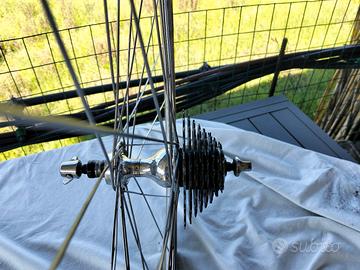 gruppo campagnolo 8v mirage e leve ergopower avanti ruote mozzi campagnolo e cerchi mavic per tubolare 36 raggi tubolari in ottime condizioni